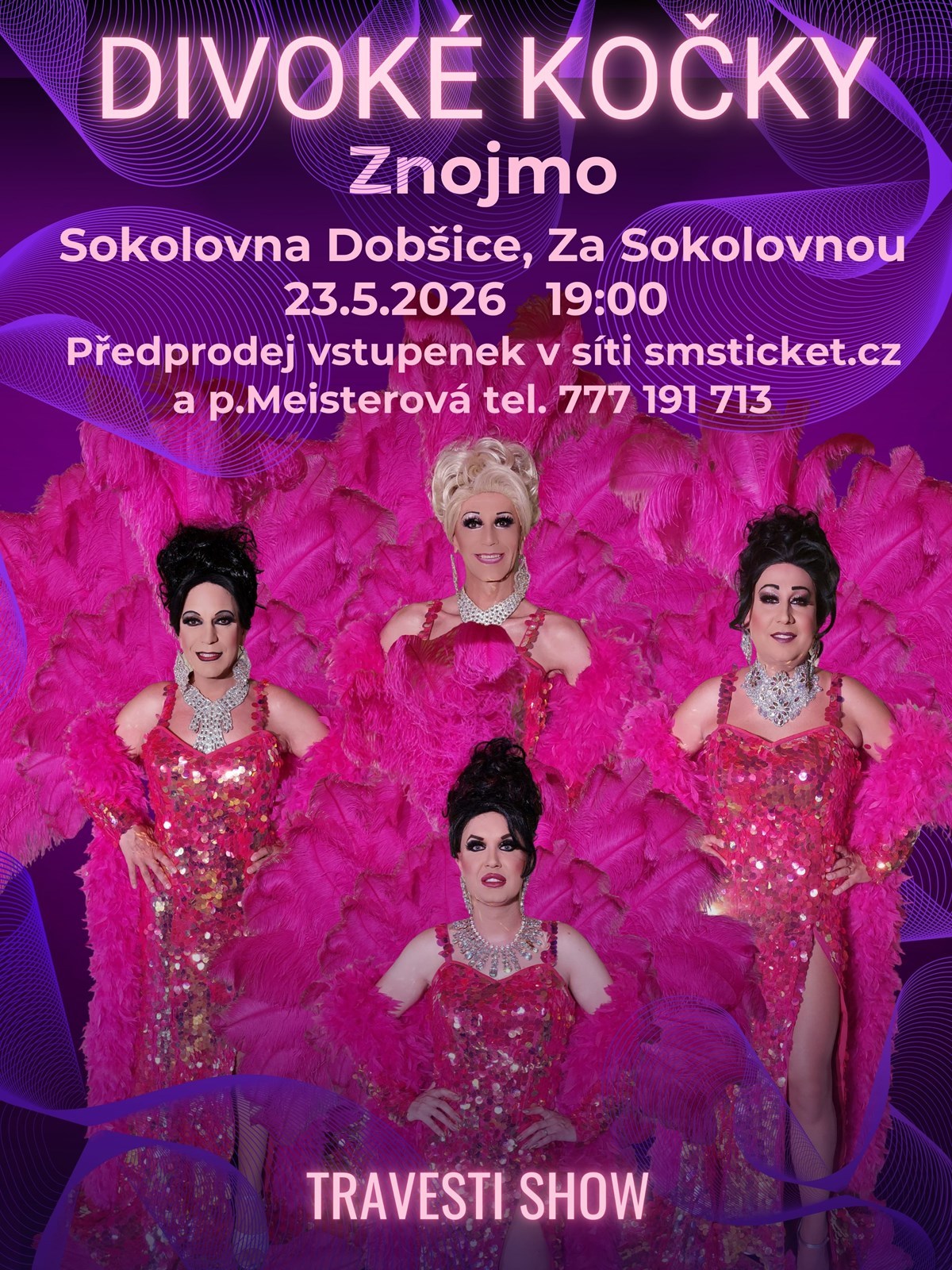 Travesti skupina Divoké kočky z Ostravy přijíždí v rámci svého turné se svým novým programem do Dobšic u Znojma, kde vystoupí 23.5.2026 od 19:00 v sokolovně TJ Sokol Dobšice.