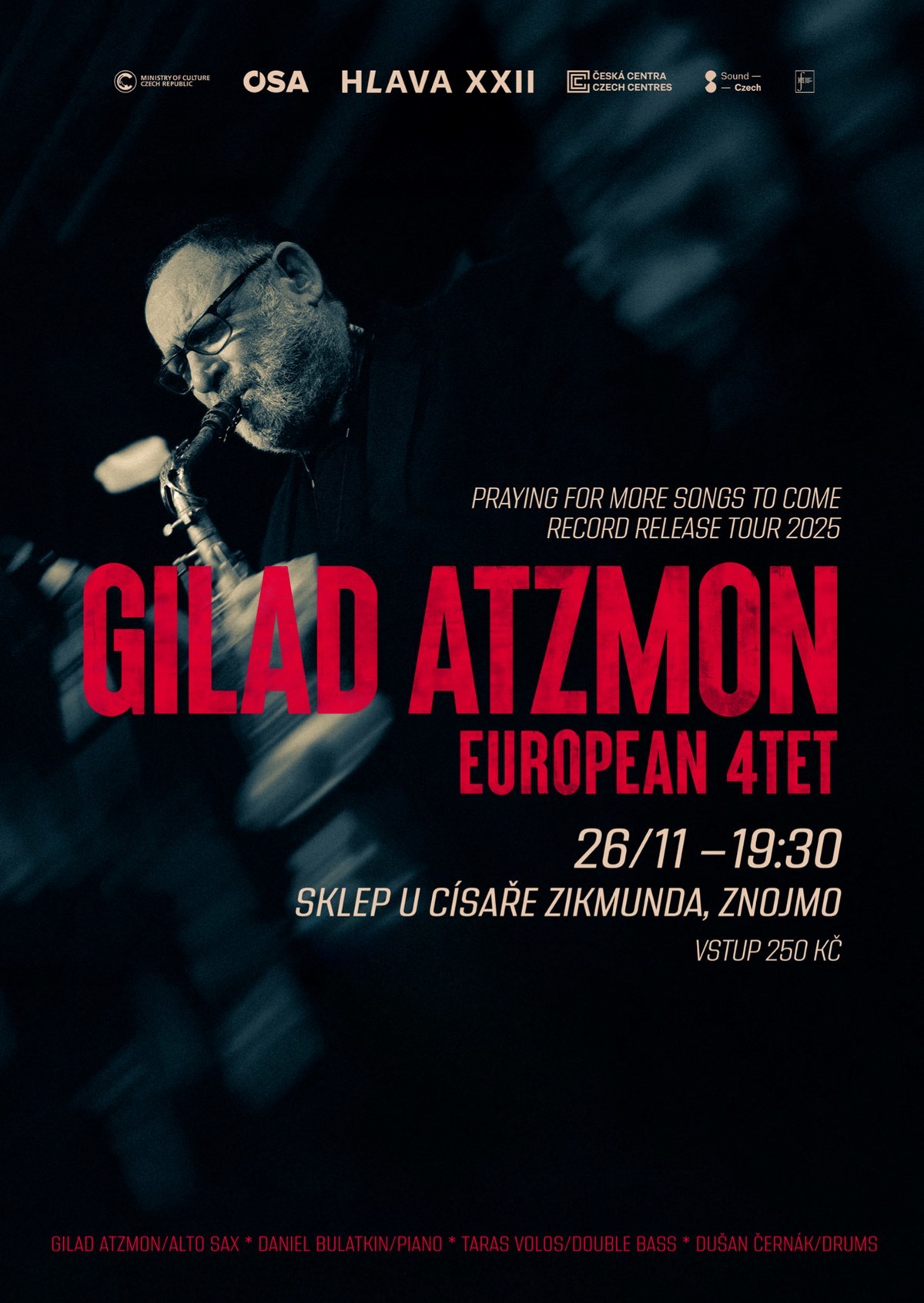 V rámci turné k vydání nového alba "Praying for More Songs to Come", zavítá evropské kvarteto saxofonisty Gilada Atzmona i do Znojma. Nenechte si ujít večer plný strhující hudby a humoru v podání jednoho z nejuznávanějších evropských saxofonistů a jeho špičkové mezinárodní kapely!