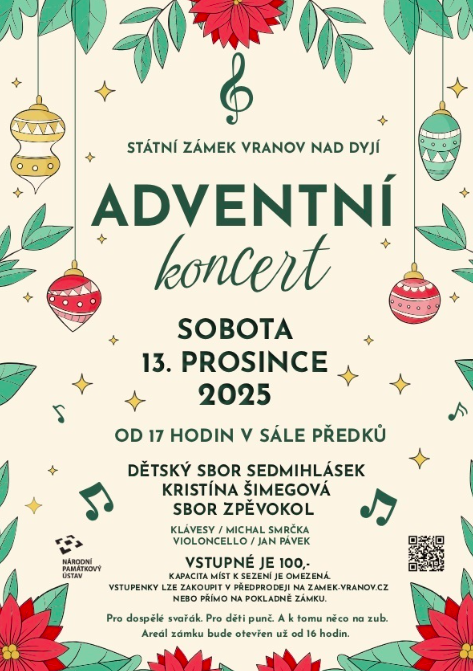 Nenechte si ujít kouzlo vánočního období na vranovském zámku. Tóny adventního koncertu se ponesou celým Sálem předků.