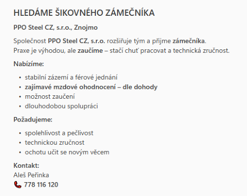 | Práci nabízí: | PPO Steel CZ, s.r.o. |