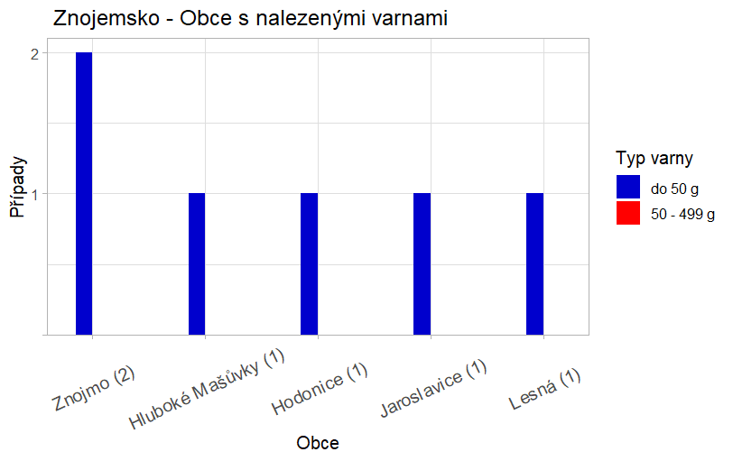 Z dostupných dat vyplývá, že varny byly odhaleny jak přímo ve Znojmě (2 případy), tak i v menších obcích – Hluboké Mašůvky (1), Hodonice (1), Jaroslavice (1) a Lesná (1). Všechny tyto varny patřily do kategorie malých domácích laboratoří do 50 g pervitinu na výrobní cyklus. Tento profil odpovídá celorepublikovému trendu, který shrnuje zpráva Národního monitorovacího střediska pro drogy a závislosti: velkovýroba se přesouvá do zahraničí a produkce malých varen pokrývá spíše poptávku místních uživatelů. Malé varny často provozují jednotlivci nebo komunity několika mála lidí a produkují od několika gramů po stovky gramů na jeden výrobní cyklus. Takový výrobní cyklus typicky trvá od 4 do 12 hodin. Vaří se za pomocí prášků obsahující efedrin nebo pseudoefedrin, typicky dovážených z Polska nebo Slovenska. V roce 2023 bylo v ČR odhaleno 189 varen pervitinu. V drtivé míře šlo právě o malé domácí laboratoře s kapacitou pod 50 g na jeden výrobní cyklus.
