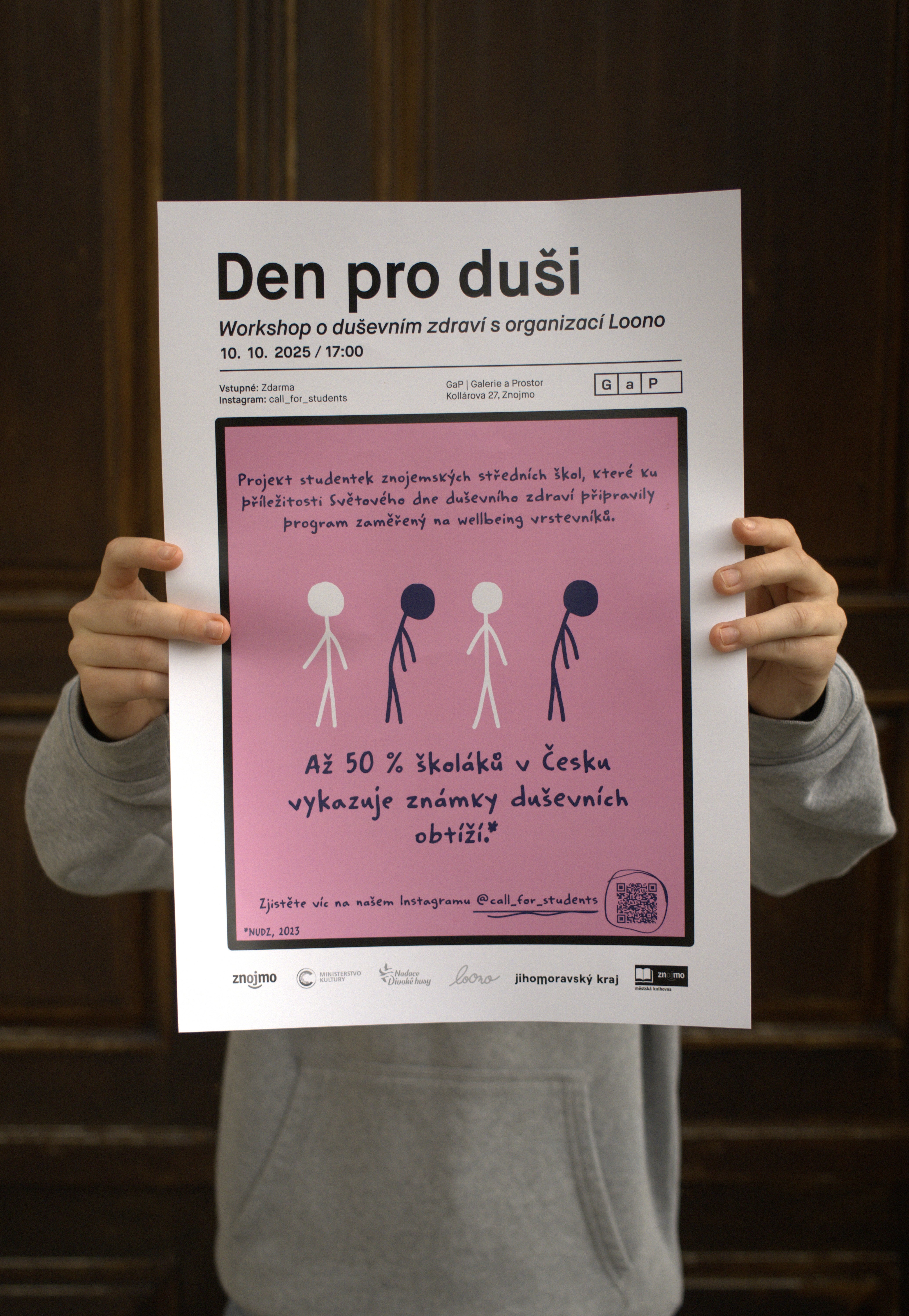 Galerie a Prostor ve Znojmě v říjnu uvede jedinečnou akci připravenou studentkami místních středních škol. Interaktivní workshop zaměřený na téma duševního zdraví je vyústěním několikaměsíční spolupráce v rámci programu Call for Students.